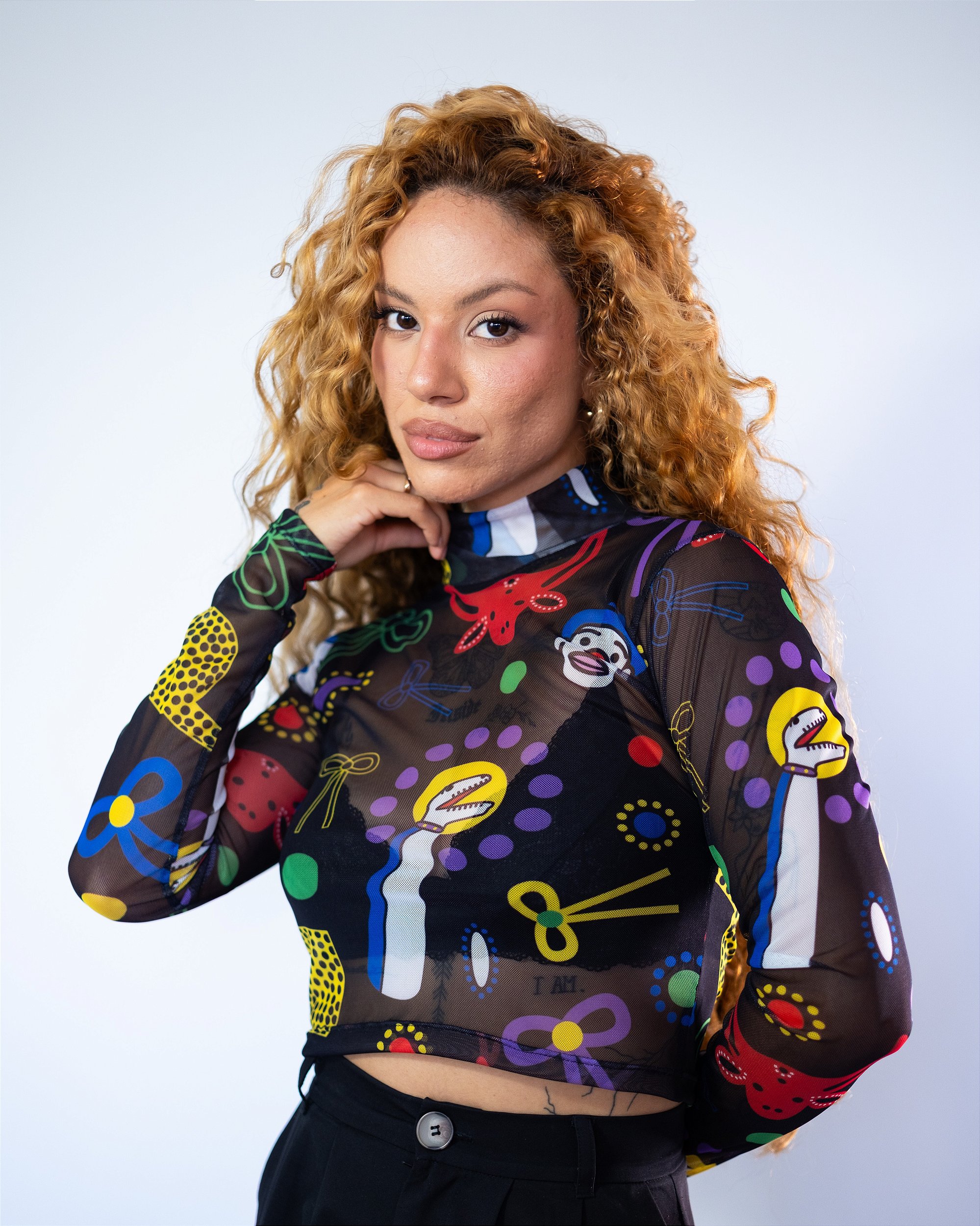 Apresentamos o nosso cropped em tule com estampa exclusiva Preto Bumbá, uma peça leve e ousada que celebra a arte popular brasileira em sua forma mais vibrante. Feito em tule de alta qualidade, o tecido oferece transparência sutil, caimento fluido e uma dose de atitude — ideal para compor sobreposições criativas ou usar sozinho com um toque de irreverência.