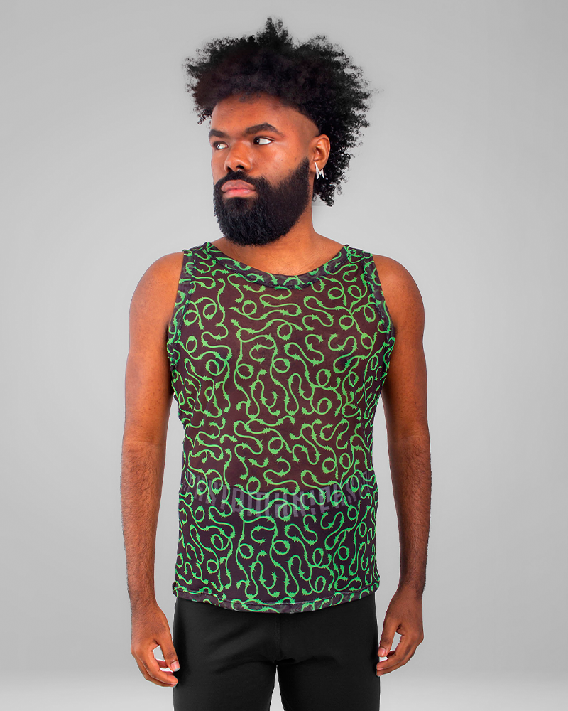 Apresentamos nossa regata em tule estampado com a estampa exclusiva FRENZY. Com alto teor de elastano, a regata adapta-se a diversos tipos de corpos, proporcionando conforto e estilo. Disponível em duas opções: versões pretas com estampa neon e brancas com estampa preta, permitindo que você escolha a combinação que mais reflete o seu estilo pessoal.